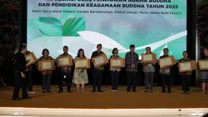 Jakarta (Humas) — Pembimbing Masyarakat (Pembimas) Buddha Provinsi Jawa Tengah, Karbono, menghadiri Kegiatan ini menjadi wujud komitmen Kementerian Agama dalam meningkatkan kualitas dan profesionalisme guru Pendidikan Agama Buddha dan Pendidikan Keagamaan Buddha. Melalui apresiasi ini, diharapkan para guru semakin termotivasi untuk menghadirkan pembelajaran yang bermutu, berkarakter, dan berdampak bagi peserta didik serta masyarakat. “Penganugerahan Apresiasi Guru Pendidikan Agama Buddha (PAB) dan Pendidikan Keagamaan Buddha (PKB) Tahun 2025” yang digelar di Auditorium H. M. Rasjidi, Kementerian Agama RI, Minggu (21/12/2025).
